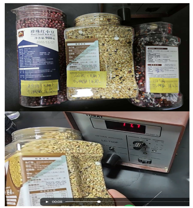 客戶反饋:如圖所示,客戶在使用脫氧劑和干燥劑的情況下,產品在半年內,含氧量高達17.7,產出油哈味,遭到很多客戶投訴。