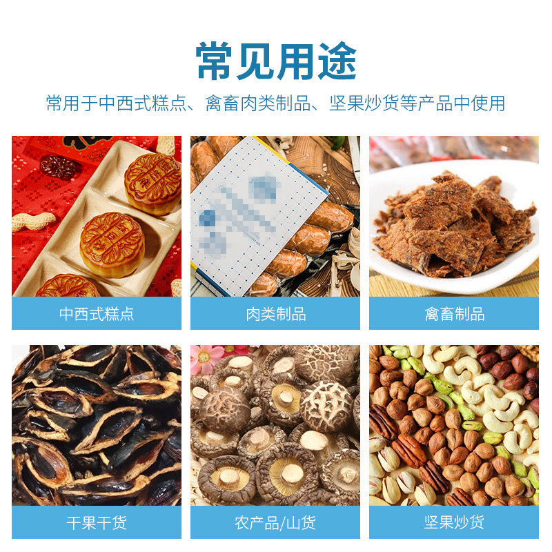 廣泛于月餅、蛋糕、花生、果仁、紅棗、香菇、干制魚肉制品、茶葉、中草藥材、豆奶粉制品、糖果等防霉保鮮;也適用于金屬制品、膠卷、工藝美術品、文物檔案等防銹防霉。