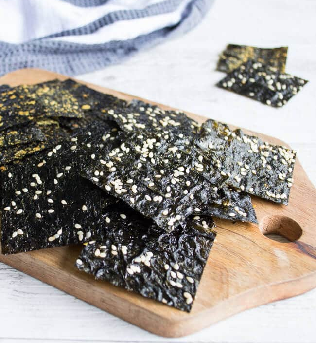 烘烤的海藻紫菜片是你能吃到的最健康的零食之一!