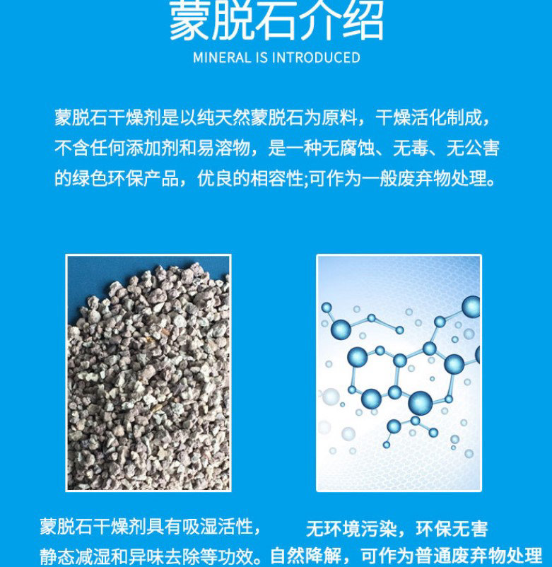 5、蒙脫石干燥劑是新型環保防潮產品,100%可降解,不會影響生態環境。