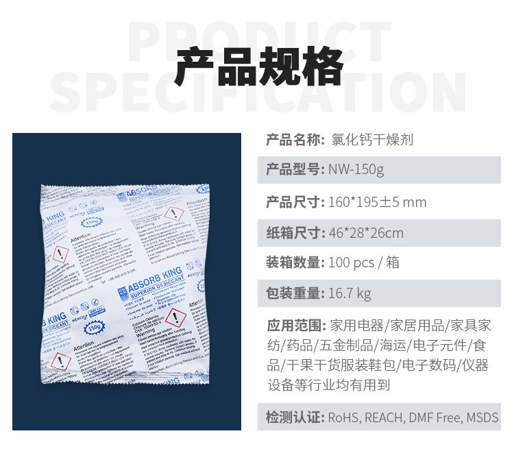 DS-150克氯化鈣干燥劑家居紡織氯化鈣干燥劑防潮吸濕凈化氯化鈣干燥劑批發