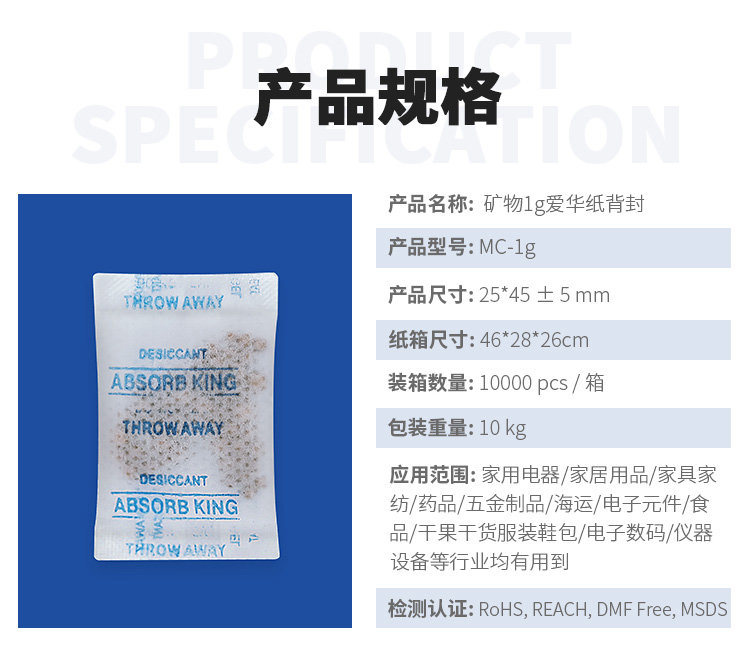 礦物干燥劑(無紡布包裝)日文版面10g(背封)