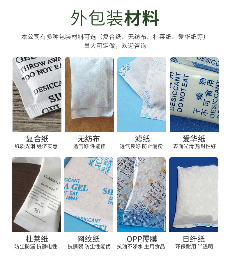 工廠定制優質硅膠干燥劑工業服裝箱包五金皮革防潮硅膠干燥劑廠家