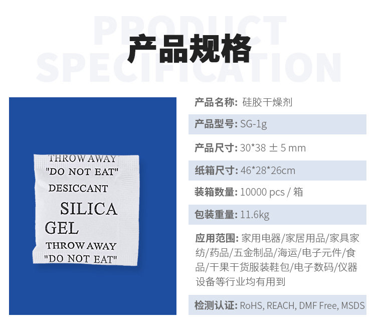 工廠定制優質硅膠干燥劑工業服裝箱包五金皮革防潮硅膠干燥劑廠家