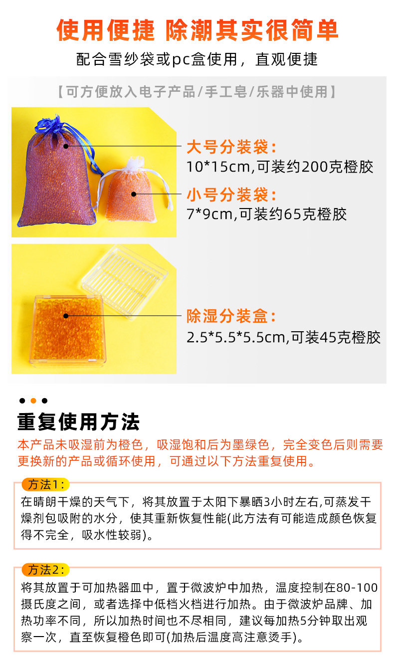 橙色變色硅膠干燥劑電子產品相機鏡頭防潮劑助聽器耳蝸防潮 除濕劑