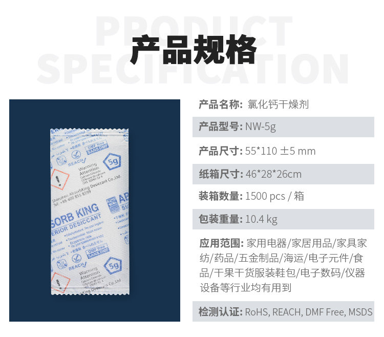 首頁 > 氯化鈣干燥劑 > DS-5克氯化鈣干燥劑除潮劑服裝工業多用途防潮防霉雙層氯化鈣干燥劑