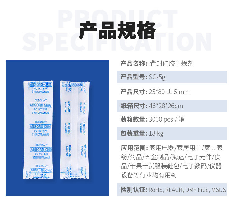 SG-20克無紡布硅膠干燥劑寵物食品藥品服裝環保干燥劑電器防潮濕干燥劑批發