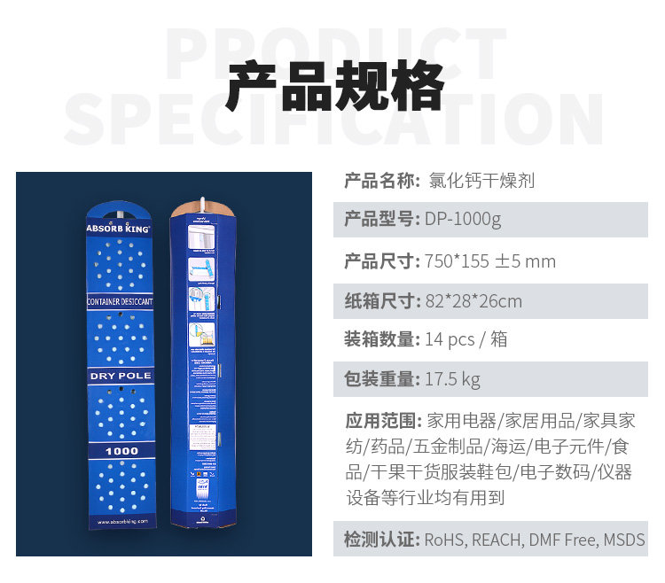 DS-1000gX5氯化鈣干燥劑集裝箱干燥劑凈化長條海運倉庫防霉氯化鈣干燥條批發
